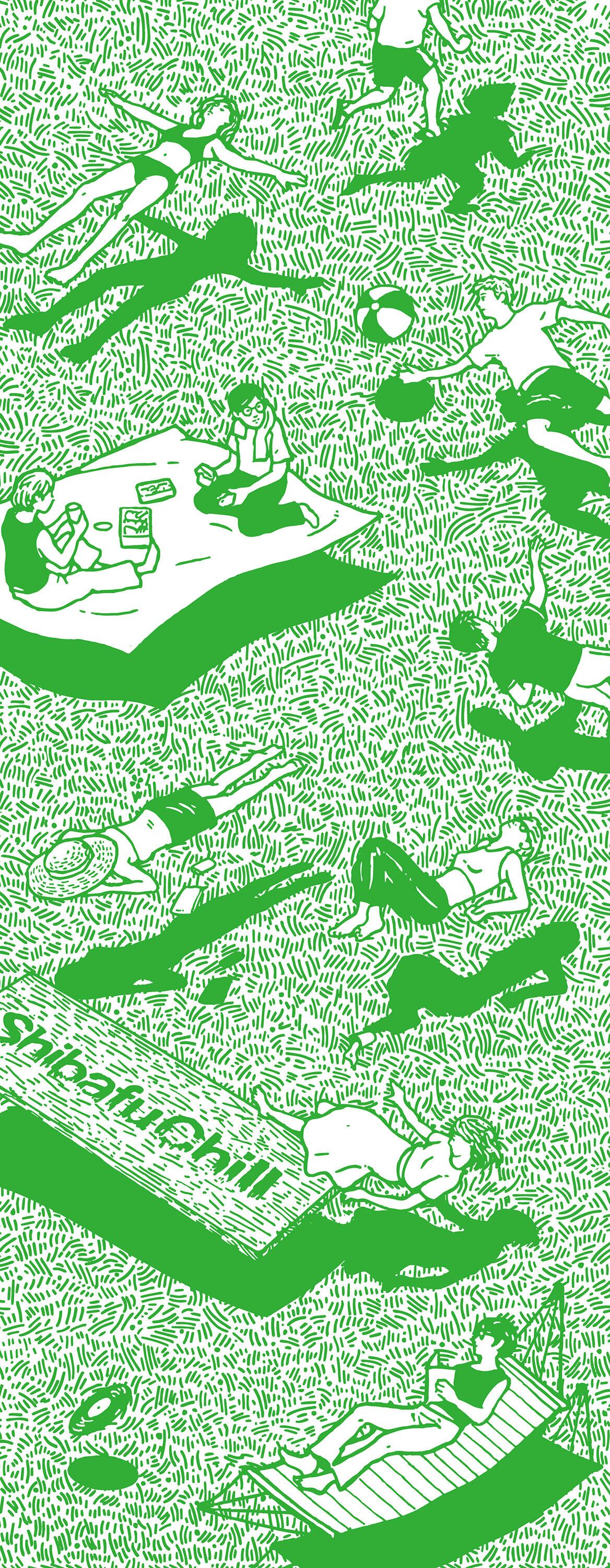 芝生チルをイメージしたてぬぐいです。